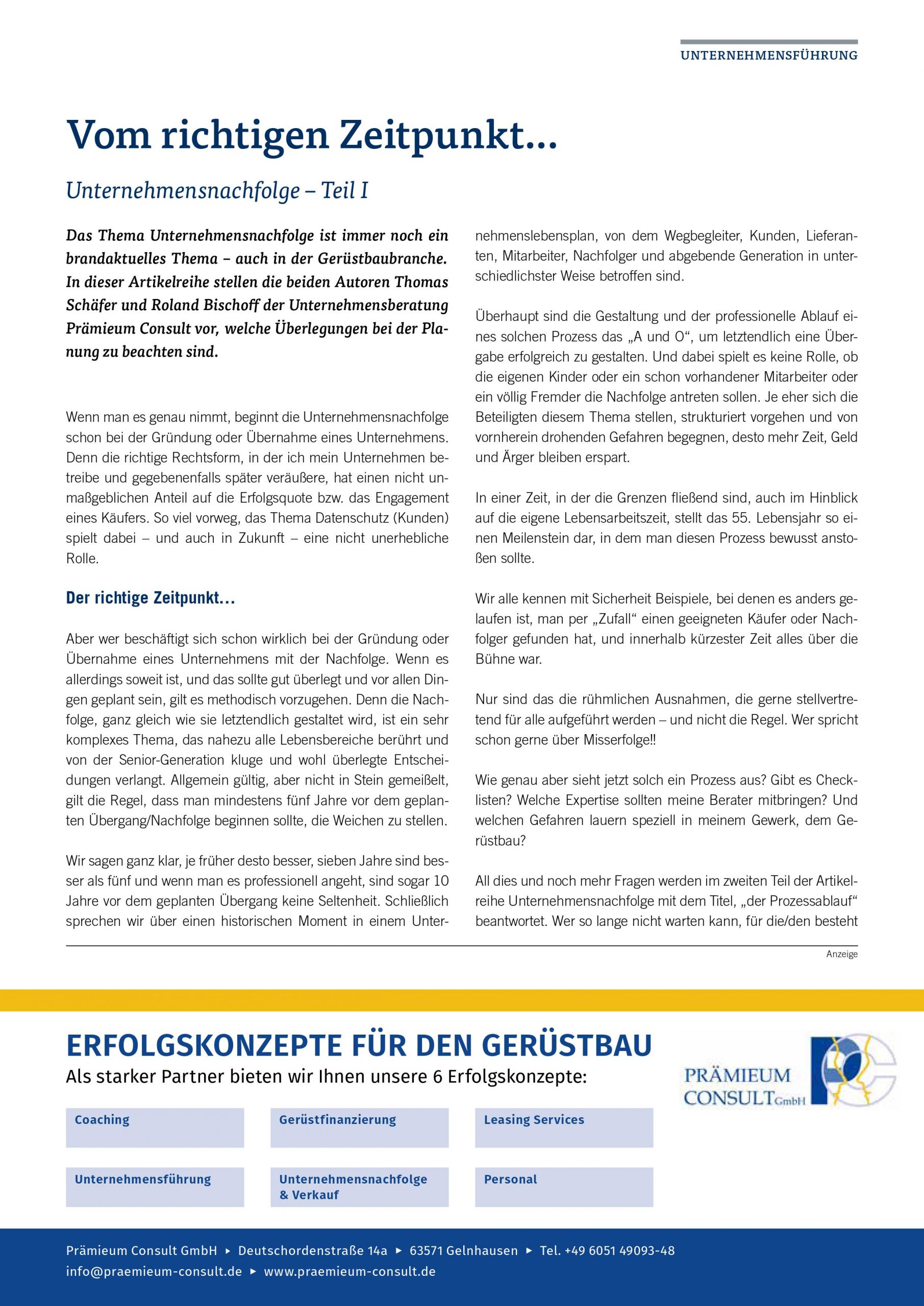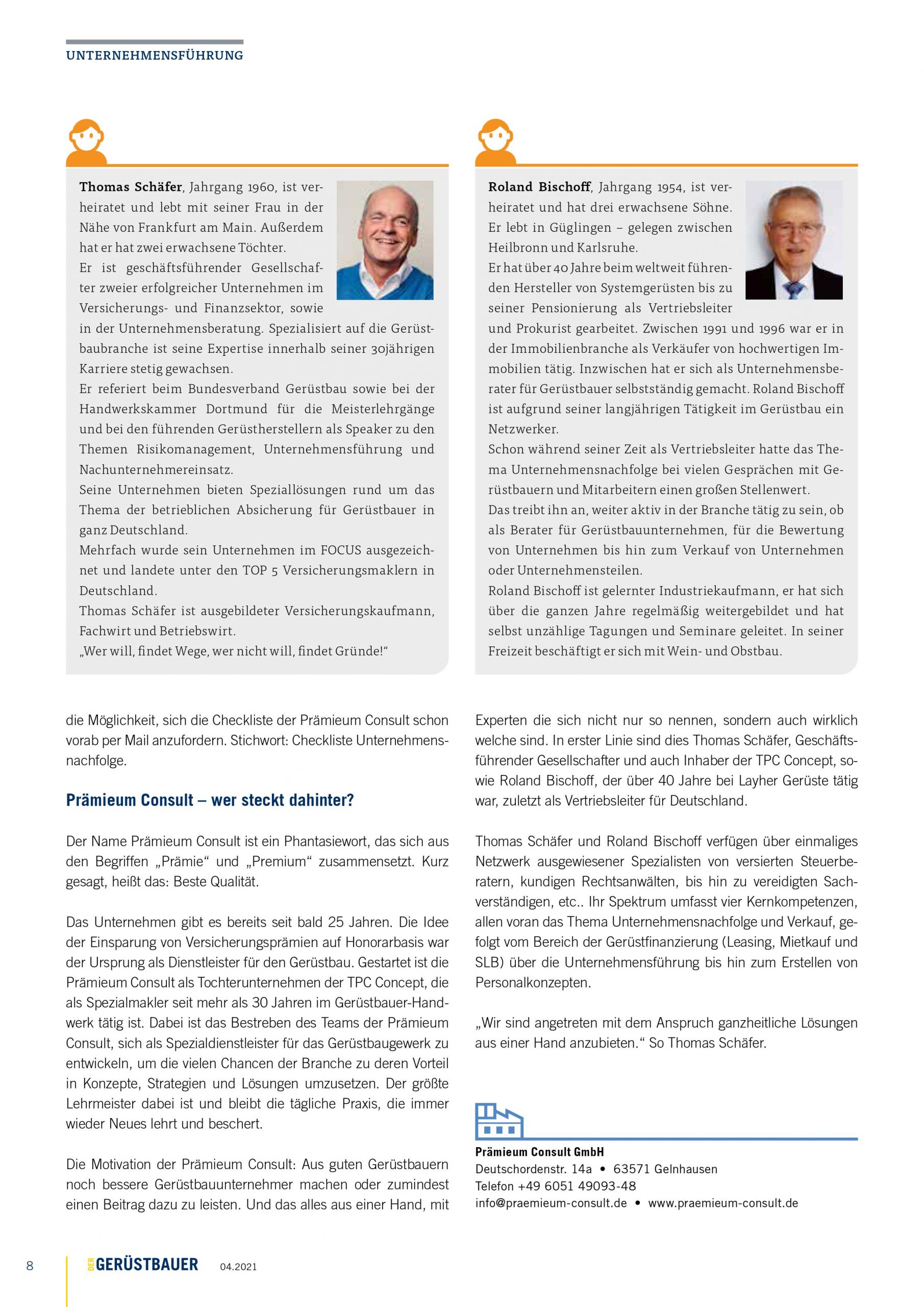 In der Ausgabe 04.2021 des Fachmagazins DER GERÜSTBAUER starten wir mit dem Teil 1 aus unserer Beitragsreihe zum Thema Unternehmensnachfolge.